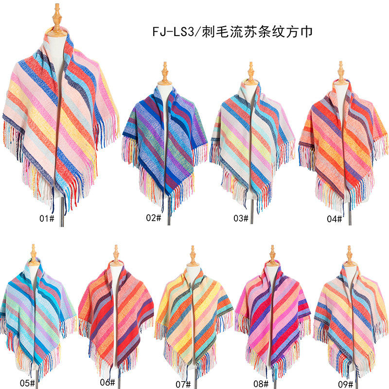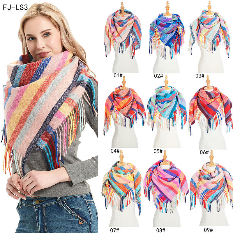 Nouveau fil rayé Polyester hiver chaud écharpes longue gland écharpe châle pour femmes et hommes