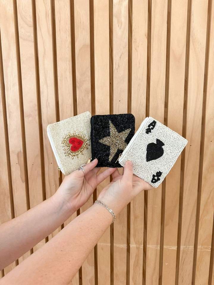 New Year Collection Best Selling Black Golden Handmade Beaded Customized Silk Screen Printed Cotton Coin Purses Zipper Closure