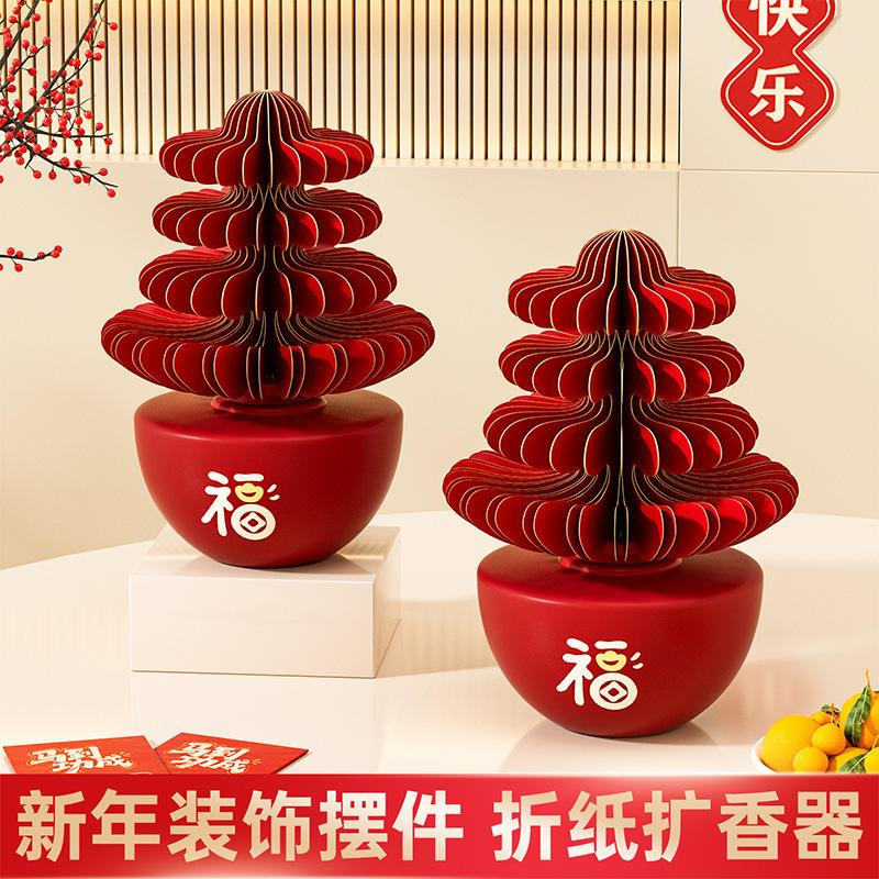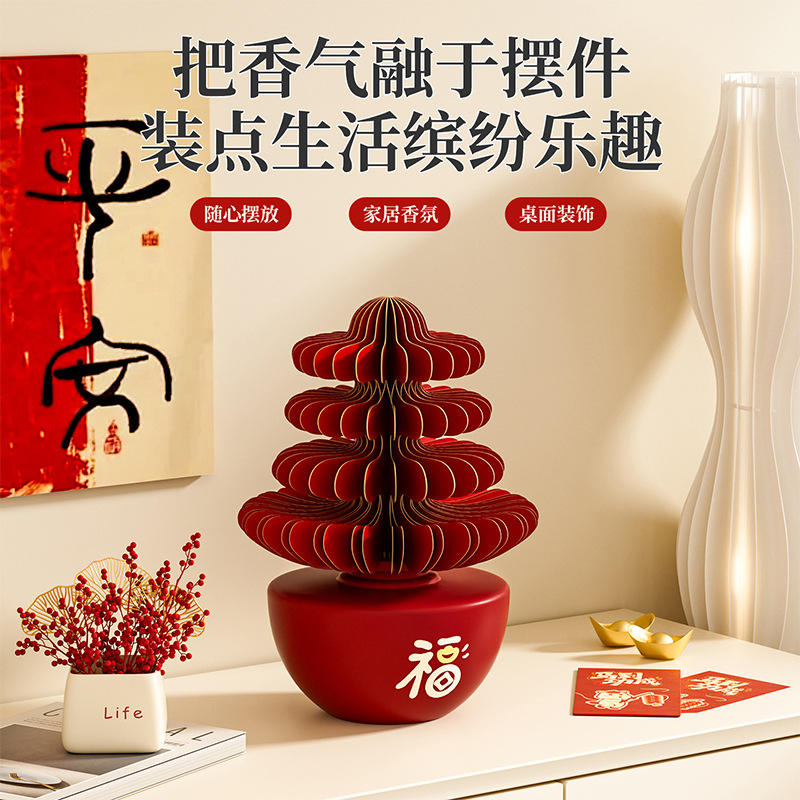 Décorations du Nouvel An, diffuseur aromatique du Festival du Printemps, design géométrique rouge, ornement avec le caractère Fu, cadeau pour la maison ou le bureau