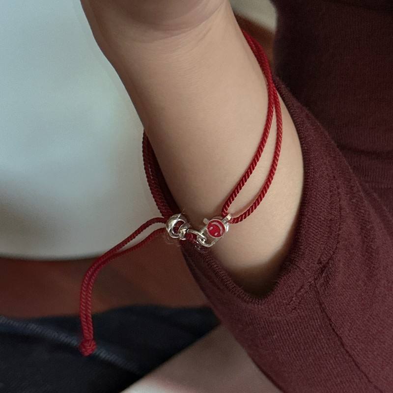New Year's S925 Sterling Silver Red for Smiley Face Rope Bracelet Simple Korean Version Niche Design Fashionable Beaded Jewelry