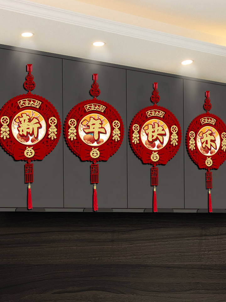 New Year's decoration four character pendant with frosted bright crystal, hanging the word 'fu' on the front door
