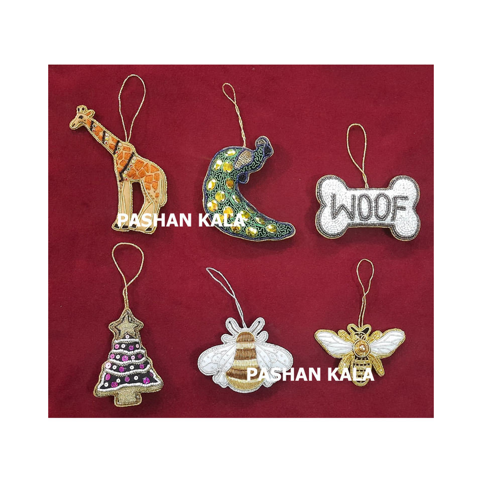 Nouveau Zari broderie arbre de noël suspendus ornements à la main tissu matériel forme multiple utilisé pour les décorations de fête de Festival