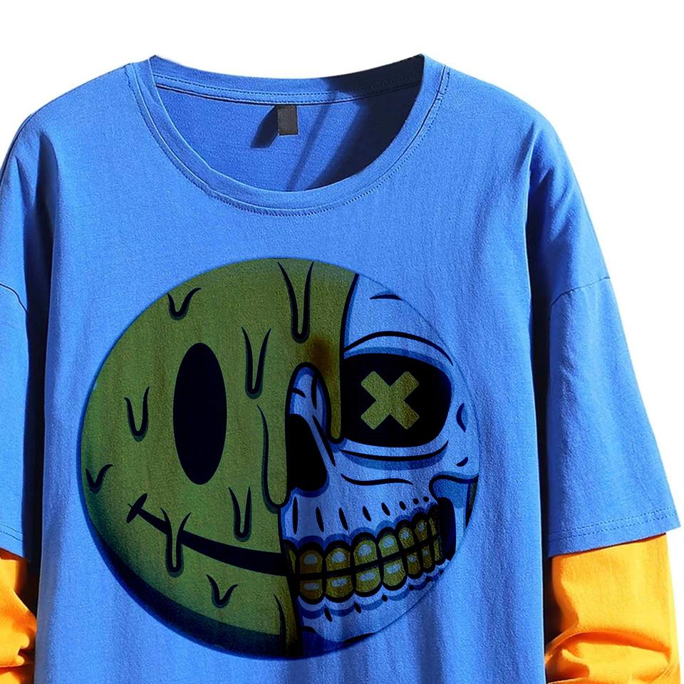 Nouveauté couches à manches longues en détresse t-shirts hommes Vintage coton lavé Double couche Hip Hop blanc plaine t-shirt Stock