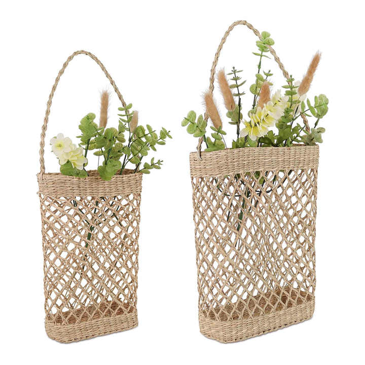 New arrival seagrass fruit & flower hanging basket door and wall mount storage containers