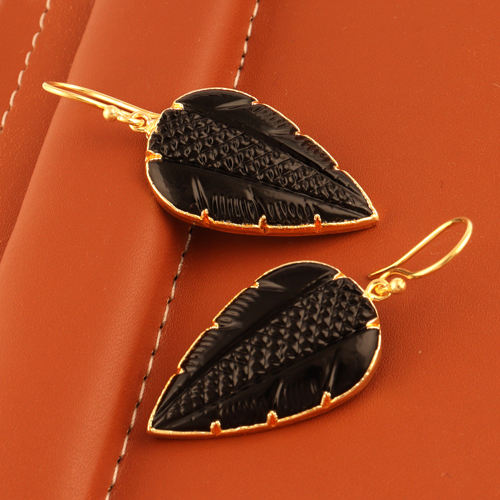 Nouvelle sculpture feuille de quartz noir plaqué or crochet boucles d'oreilles goutte d'eau mignonnes boucles d'oreilles sculpture pierre précieuse boucles d'oreilles cadeau pour femme