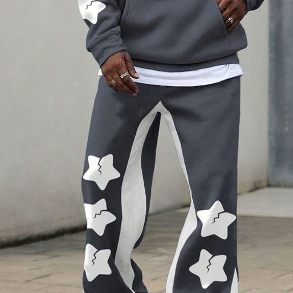 Nouvel ensemble de survêtement 2 pièces évasé pour homme, en coton pur épais, délavé et vieilli, idéal pour l'hiver, vente en gros, prix abordable, 100% coton