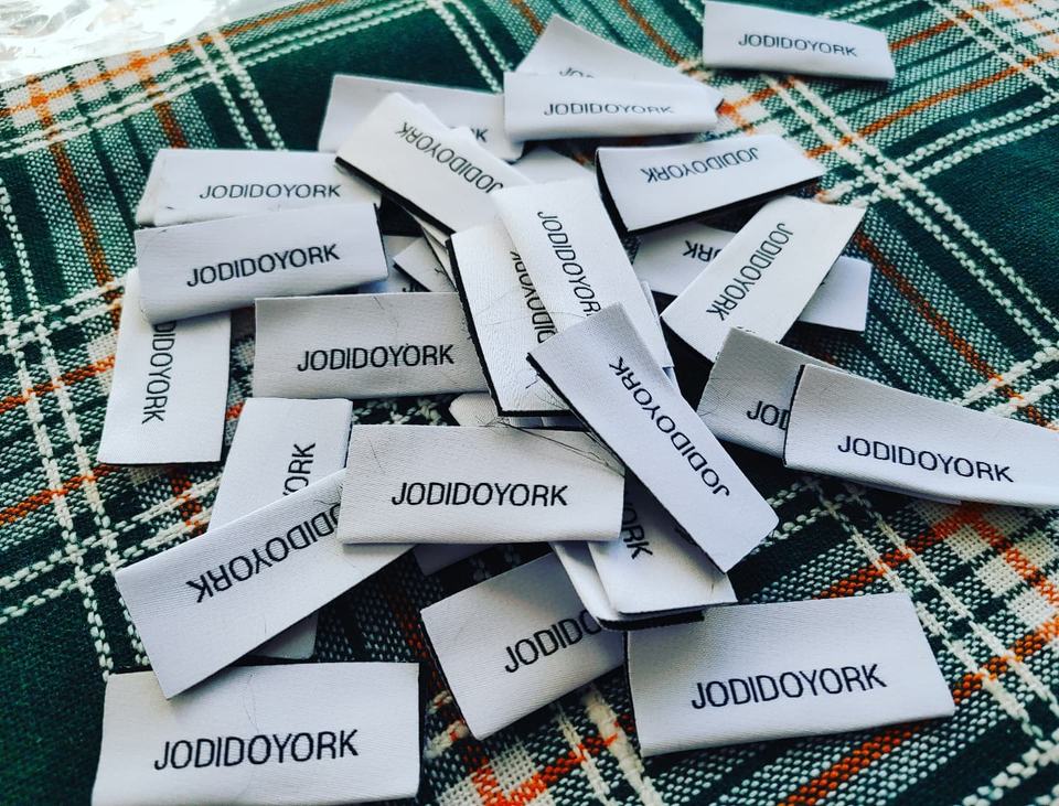 Étiquettes cousues personnalisées en polyester tissé, nouveau design, pliées aux extrémités, avec logo et forme sur mesure pour vêtements, chaussures, sacs (Échantillon disponible en 7 jours)