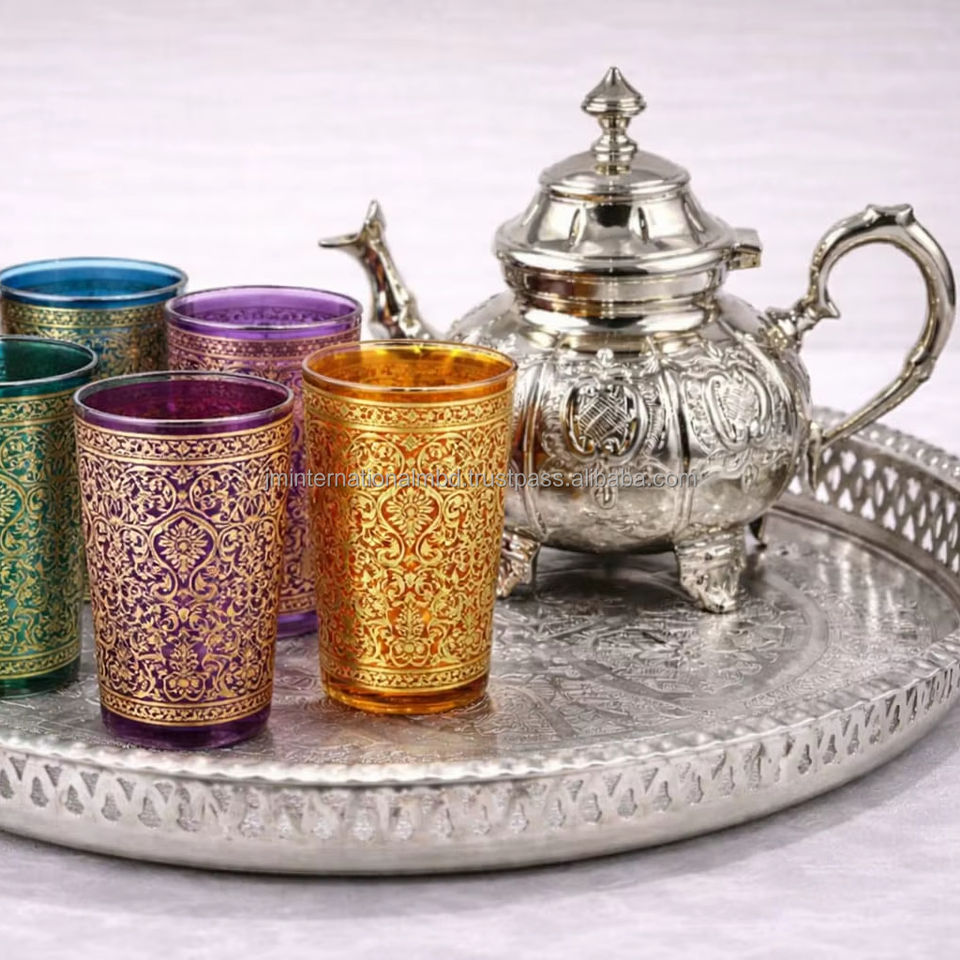 Service à thé marocain, nouveau design, 6 verres, un plateau, une théière, dans un coffret cadeau