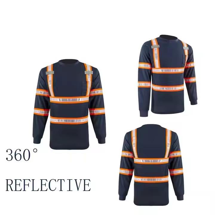 Nouveau design, col rabattu, manches longues, vêtements de sécurité professionnels personnalisés, vêtements de sécurité réfléchissants, t-shirt à impression réfléchissante
