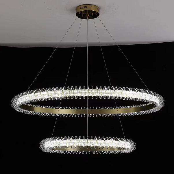 Nouveau design or cristal double cercle LED cristal villa pendentif lumières luxe moderne lustre en or
