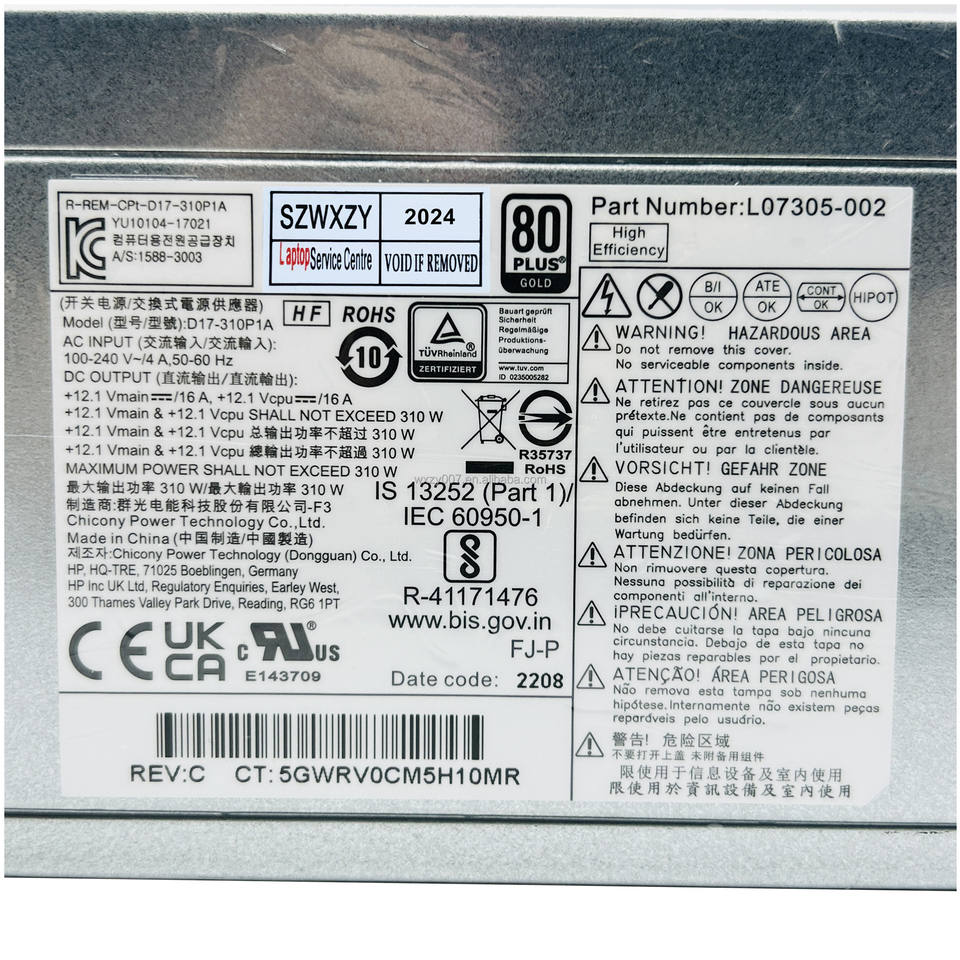 Nouveau pour HP 280 G4 Pro 600 800 G3 Alimentation 4 broches 310W D17-310P1A L07305-002 D16-250P2A D16-180P1B PCH023 PCG007 D16-180P1A
