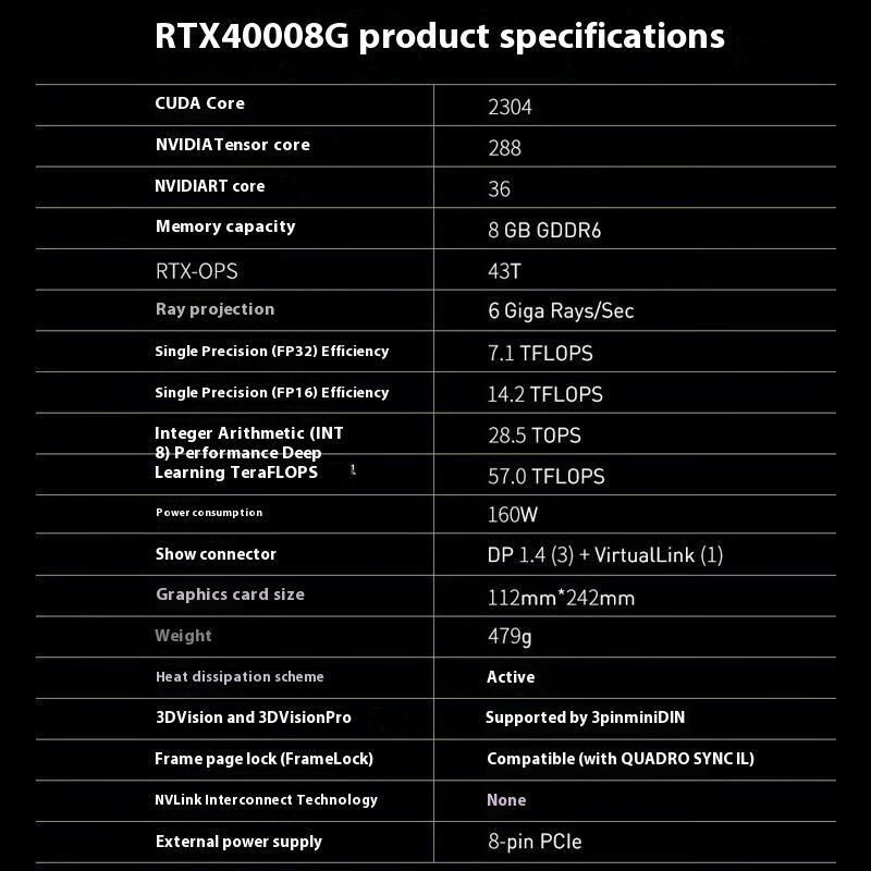 Nouveau pour NVIDIA Quadro RTX 4000 8GB GDDR6 GPU poste de travail de bureau carte graphique DP 3D modélisation rendu dessin ventilateur refroidisseur