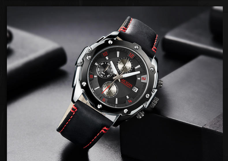 New genuine leather couple watches multi-functional chronograph quartz wristwatches for men and women