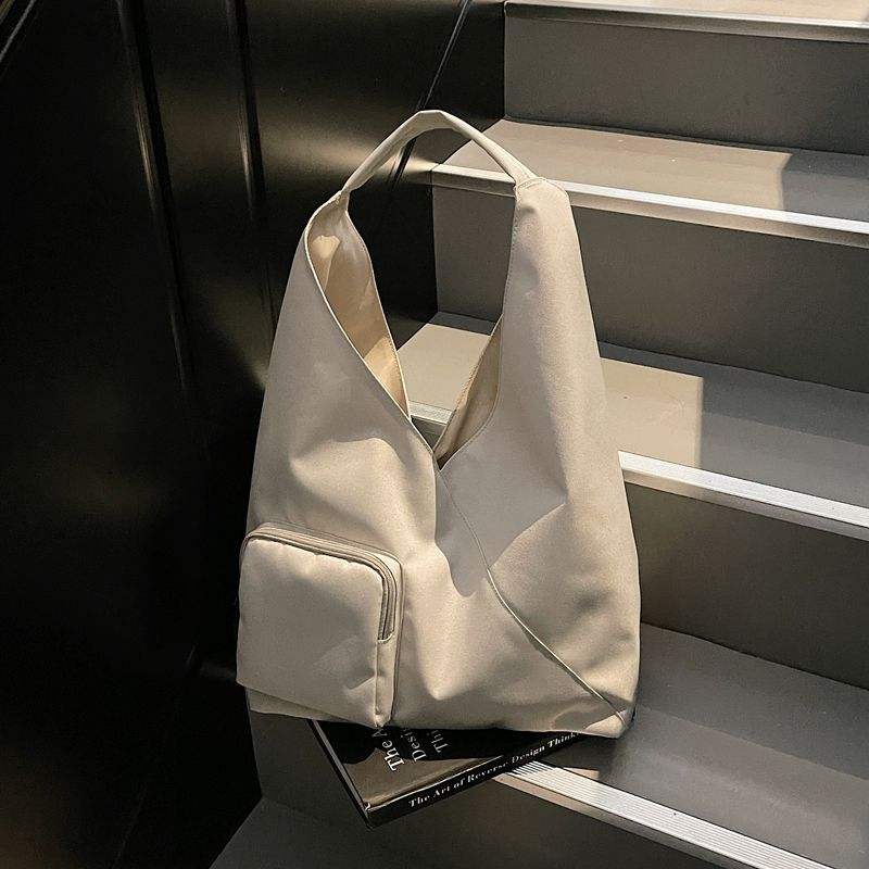 Nouveau sac à main triangulaire grande capacité pour femme, sac fourre-tout décontracté à bandoulière couleur unie avec fermeture ouverte et fermée