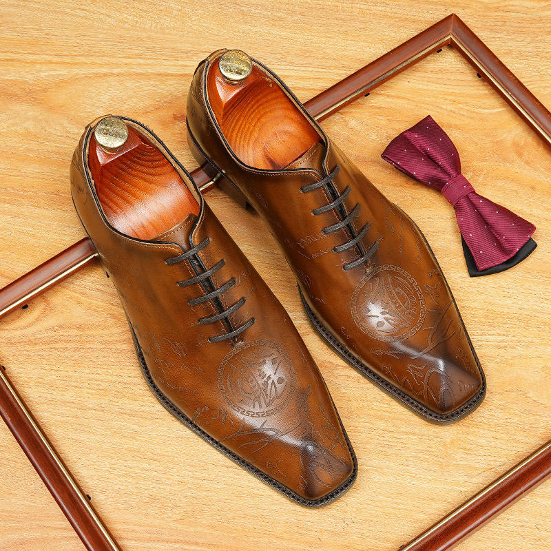 Nouvelles chaussures habillées en cuir pour hommes de grande taille, à motif en cuir gaufré, bout pointu, en cuir de vache, brogues pour hommes