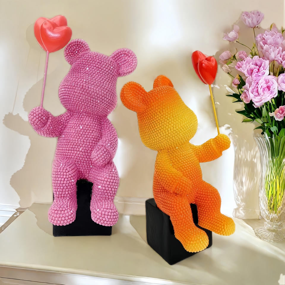 New love Artistic Sculpted Folk Art Balloon Bear Ornament Epoxy Resin Figurine for Living Room t Entrance Wine Cabinet Holiday