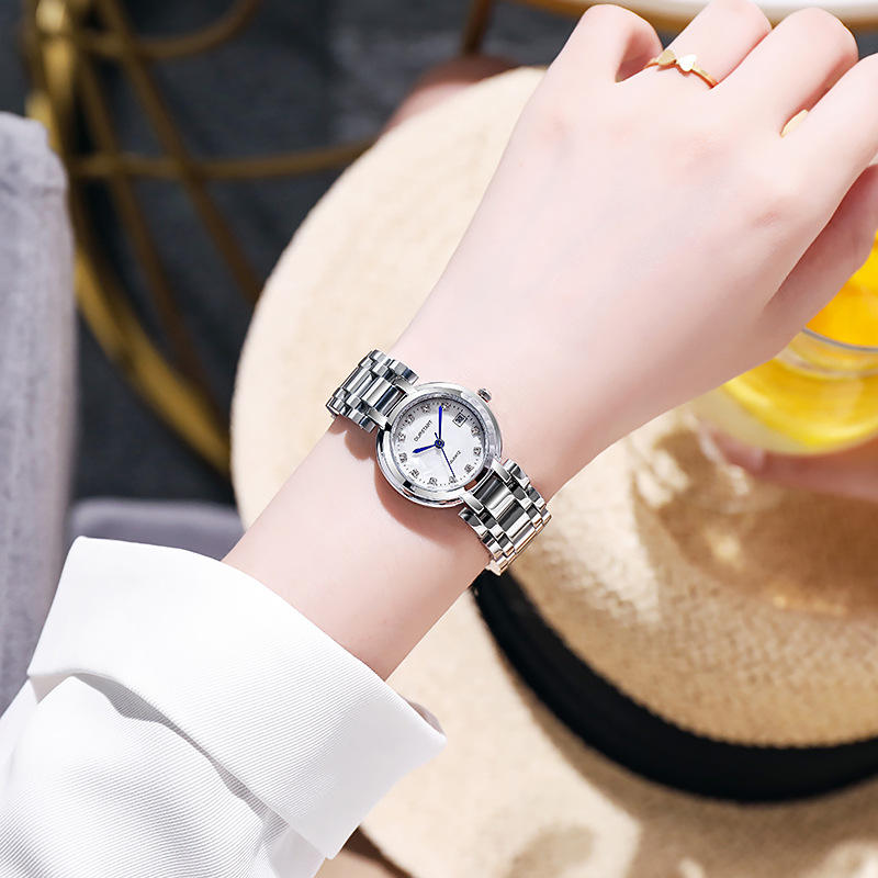 New minimalist mother-of-pearl watch with rhinestone hour markers and elegant steel strap