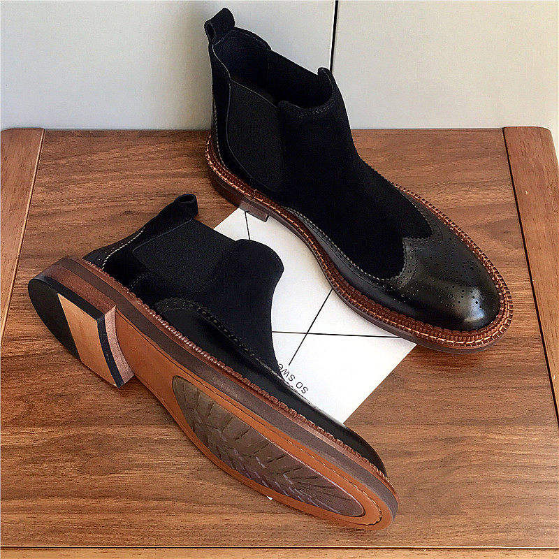 Nouvelles bottines Chelsea gravées Brookes - bottines courtes pour homme en cuir véritable avec empeigne en daim synthétique et chaussures en cuir à tige haute