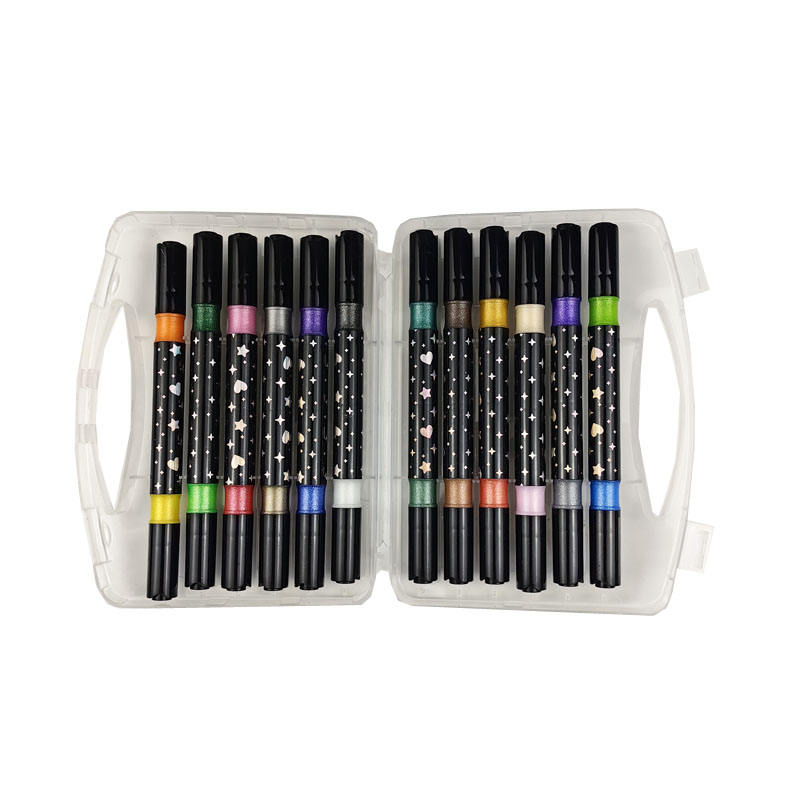 Nouveaux produits double extrémité deux couleurs bricolage peinture marqueur stylo peinture acrylique à base d'eau stylo marqueur métallique ensemble