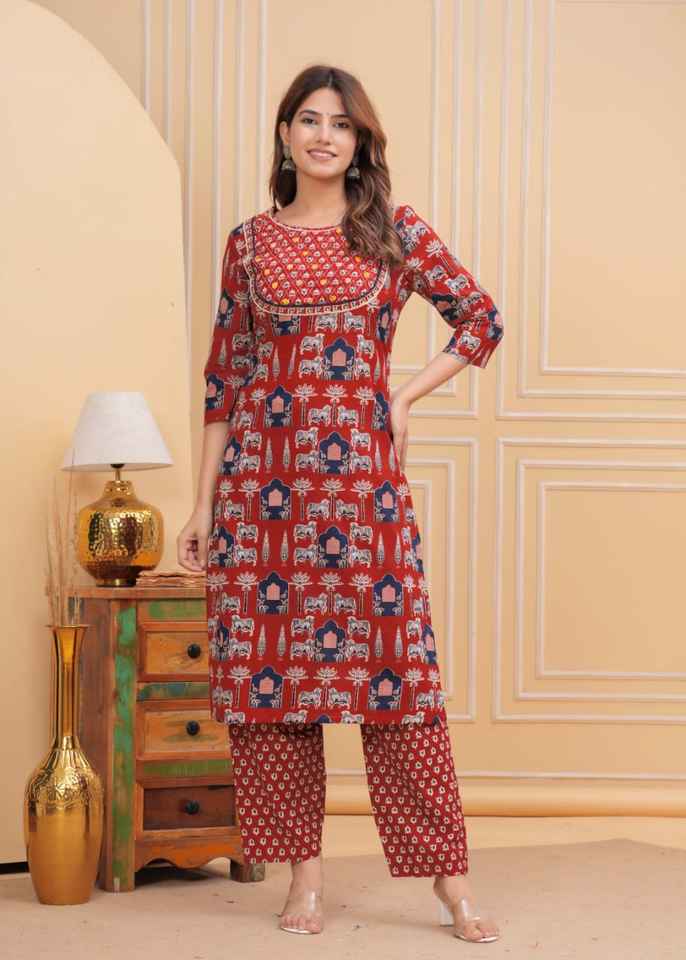 New quality assured as like showroom fabric and stitch straight kurta set Women's printed cotton