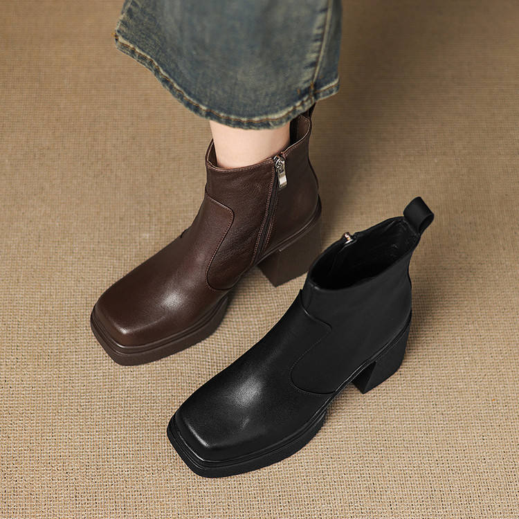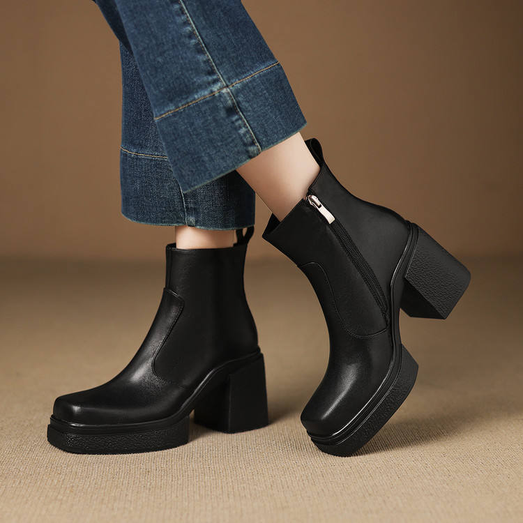 New Sheepskin Lambskin Side Zipper Waterproof Genuine Leather Upper Anti-Slip Durable Ankle Boots Solid Color Casual Warm