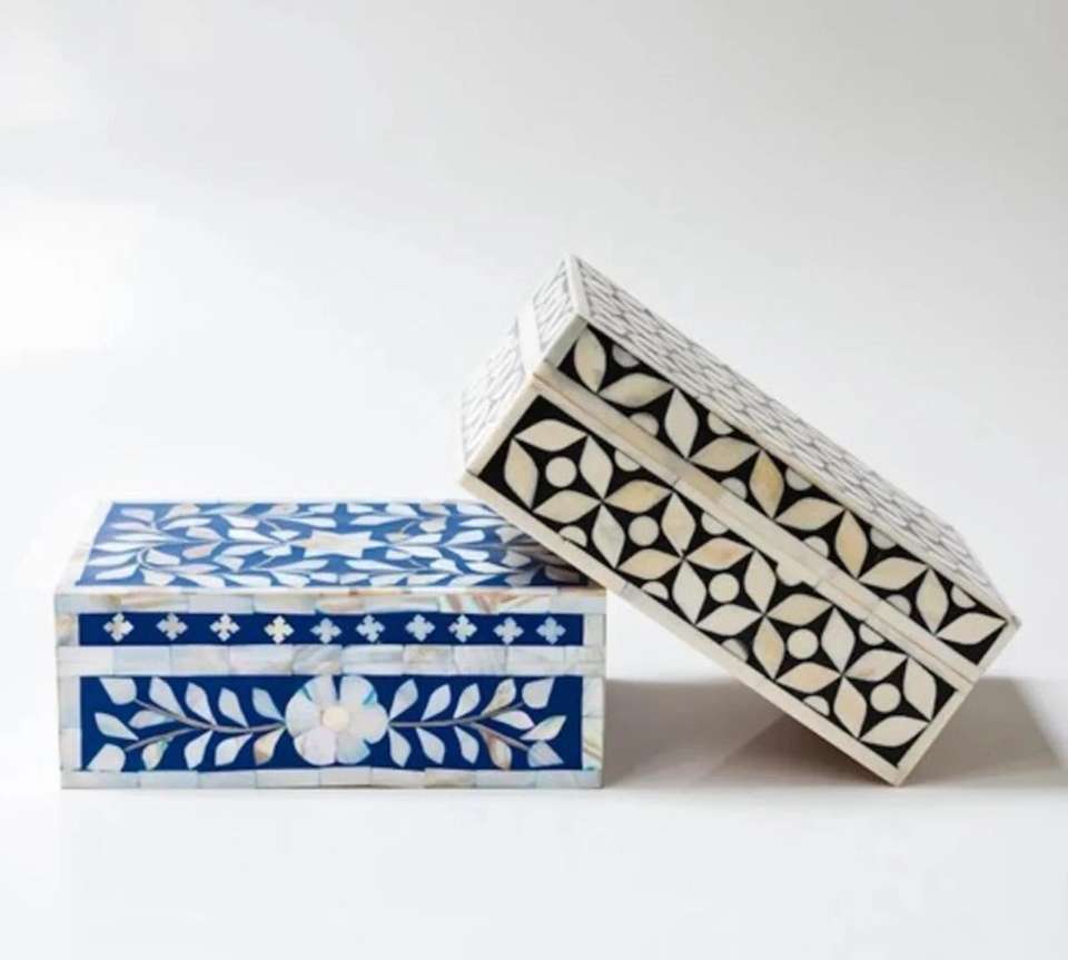 Boîte d'emballage pour bijoux en incrustation d'os, vente chaude, écologique, design personnalisable, boîte de rangement pour bijoux en incrustation d'os
