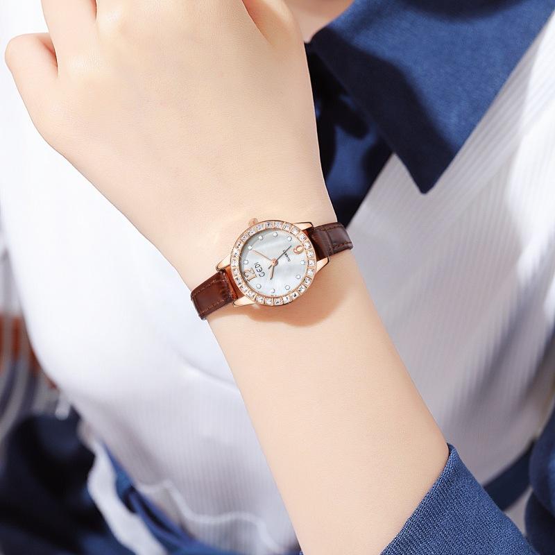 New women's mother-of-pearl dial watch high-value student-style quartz watch with leather strap