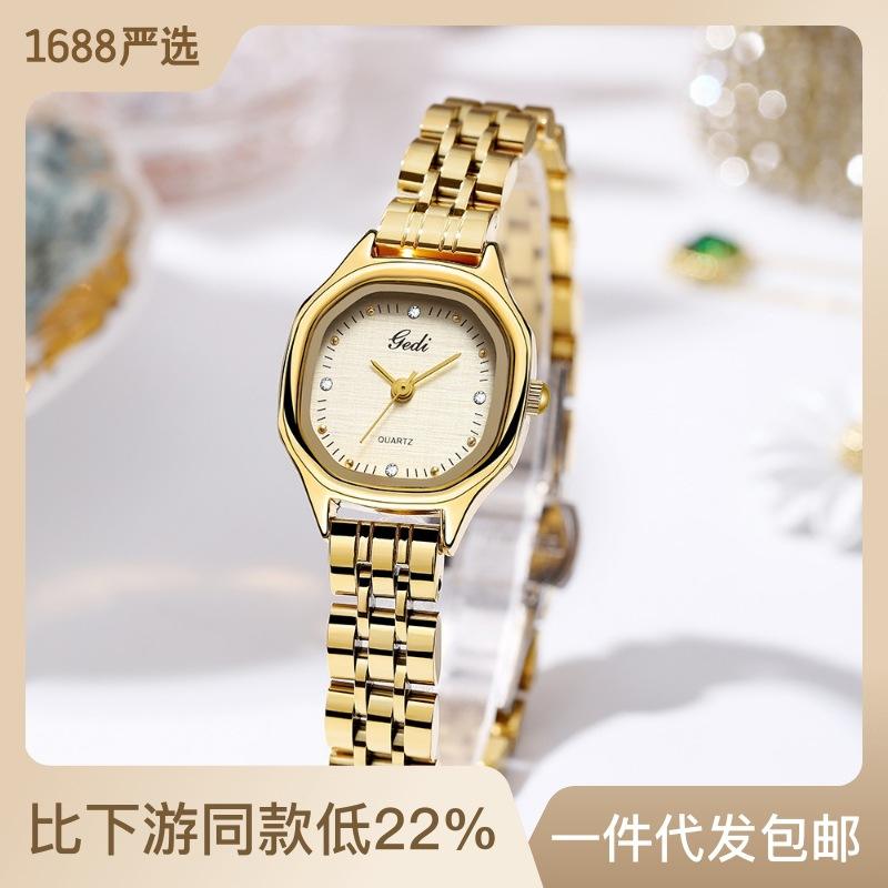 New women's watch stylish and compact fabric-textured dial niche and high-end stainless steel quartz watch