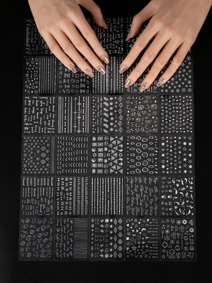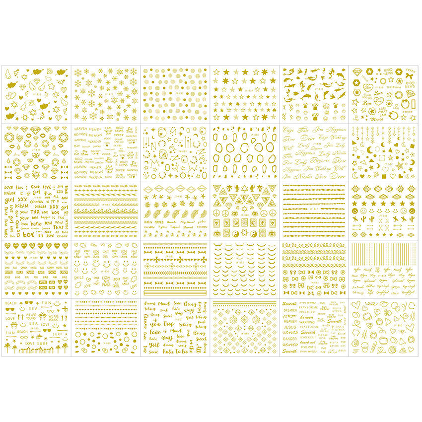 Lot de 30 stickers/décalques pour ongles doré/argenté bronzé — étoiles géométriques laser, étanches, non toxiques pour manucure