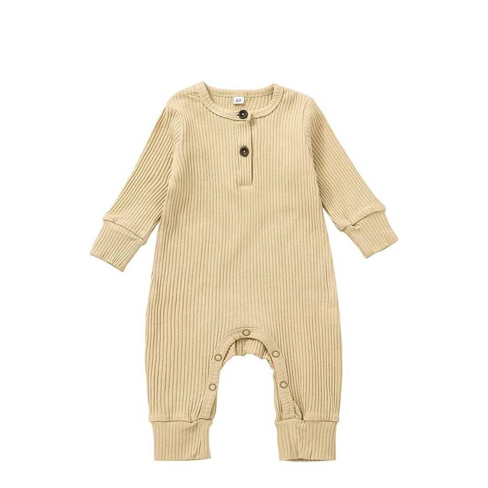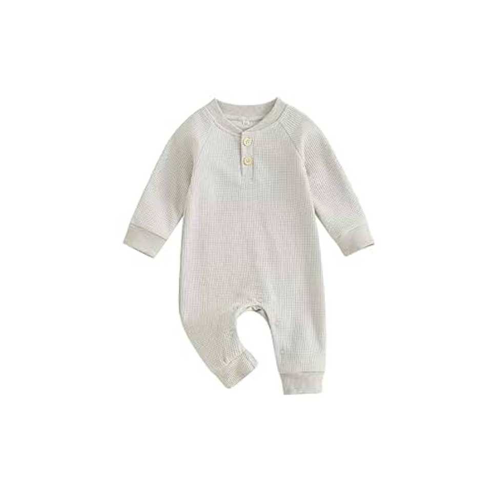 Newborn Baby Boy Waffle Knit Jumpsuit Long Sleeve Button Up Solid One Piece Rompr Casual Romper Long Pants