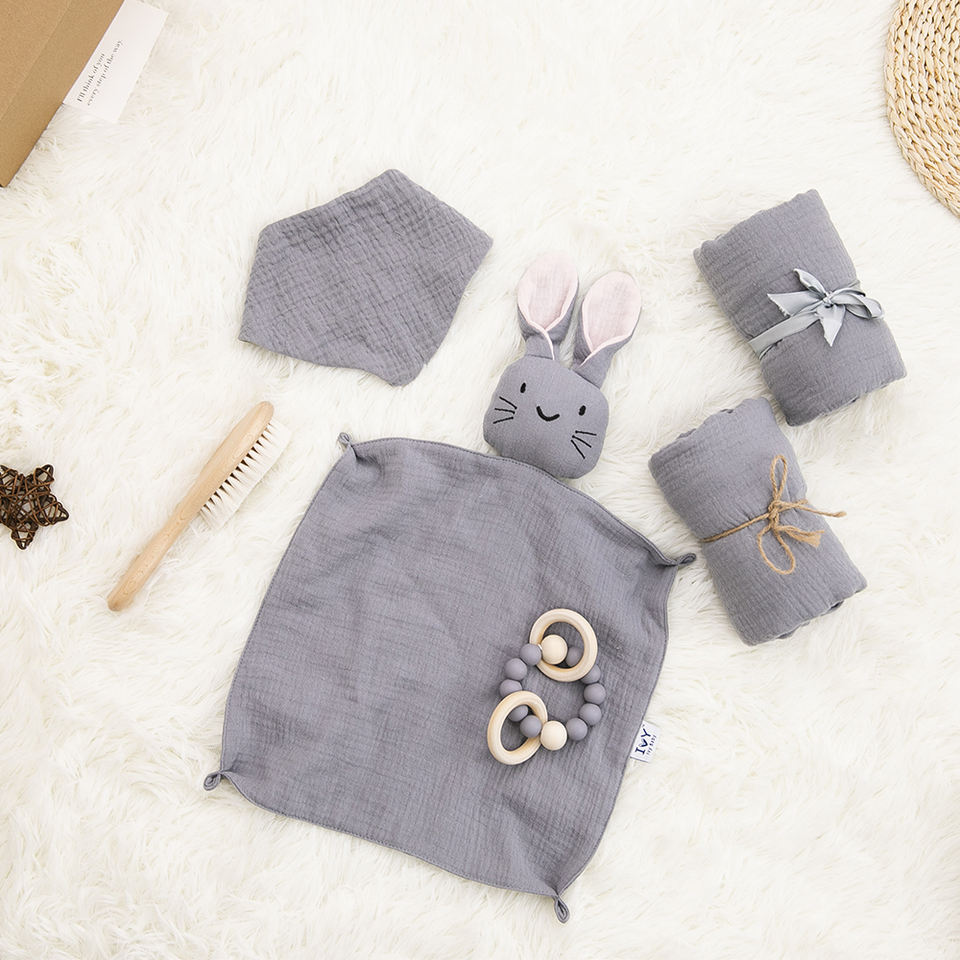 Coffret cadeau pour bébé nouveau-né Essentials en coton doux avec couverture en tissu de mousseline Brosse à bavoir pour serviette de confort