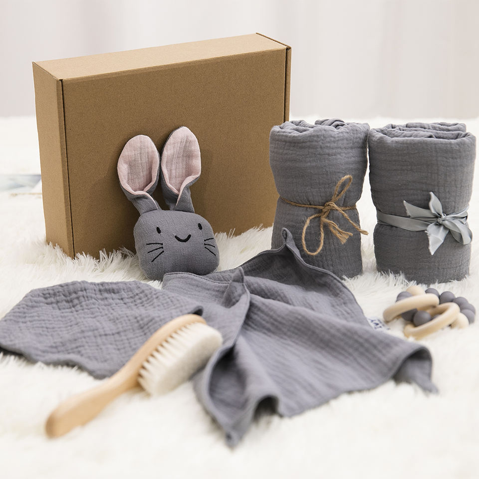 Nom du produit:Coffret cadeau bébé nouveau-né Essentials de coton avec couverture en tissu mousseline