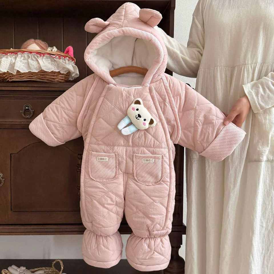 Newborn Baby Onesie Cute Zipper Quilted Jumpsuits Puffer Outside Unisex Kids Hoodie Romper Thermal Duck Down Baby Snowsuit