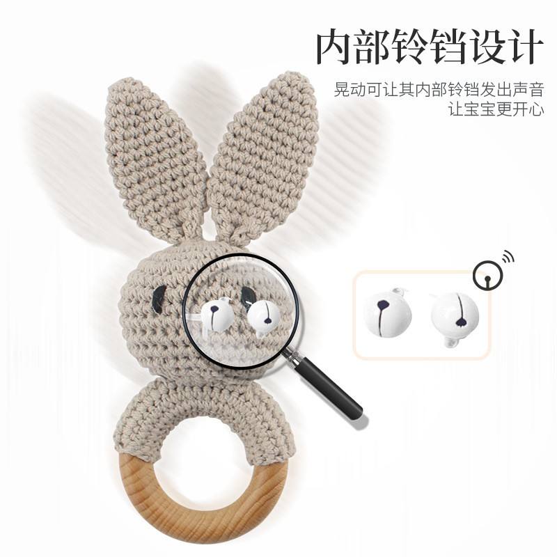 Hochet en bois au crochet pour nouveau-né, jouet lapin, anneau de dentition, cadeau, décoration murale, boîte artisanale en bois pour la décoration intérieure