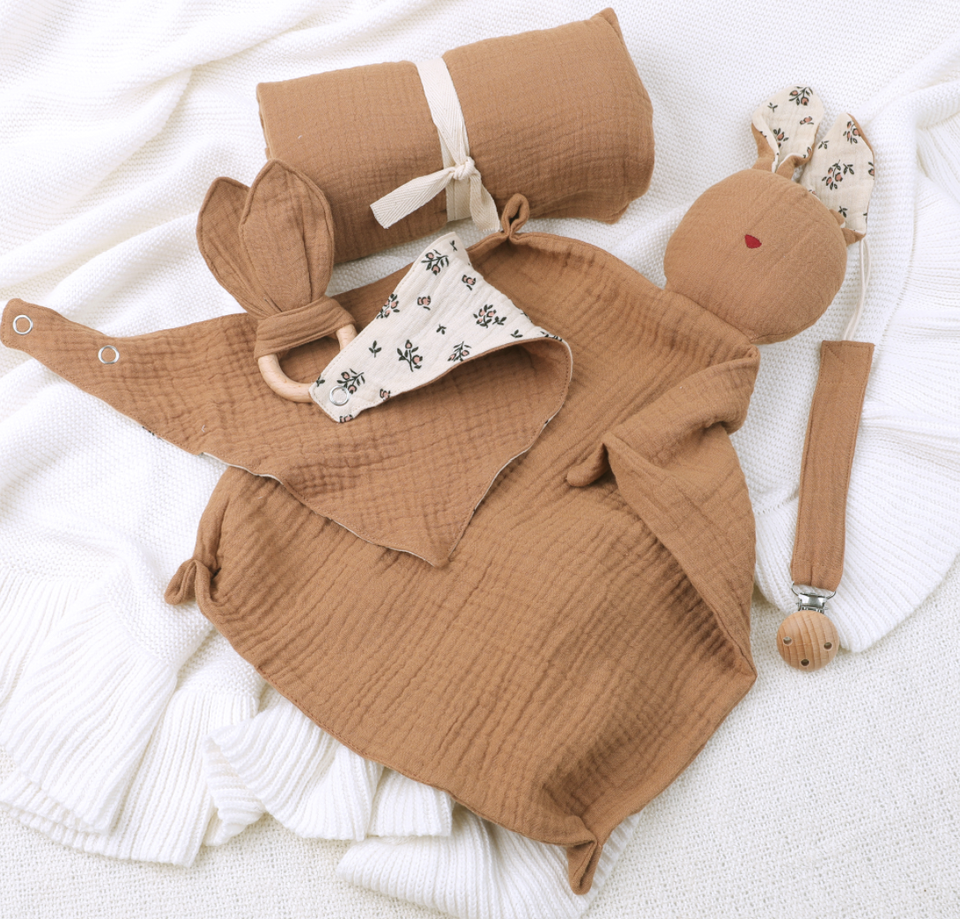Coffret cadeau pour nouveau-né, ensemble de souvenirs pour les étapes importantes, chaîne de sucette, lange en mousseline pour bébé, crochet, bavoir, anneau de dentition, 0-6 mois