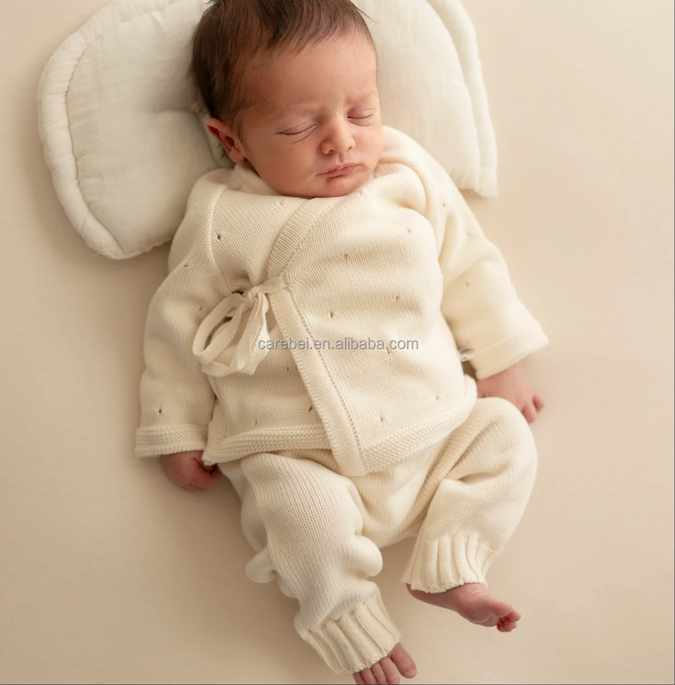 Ensemble de vêtements en tricot pour nouveau-nés, pull en coton pointelle, kimono en tricot et pantalon, ensemble 2 pièces, accessoires photo pour bébés