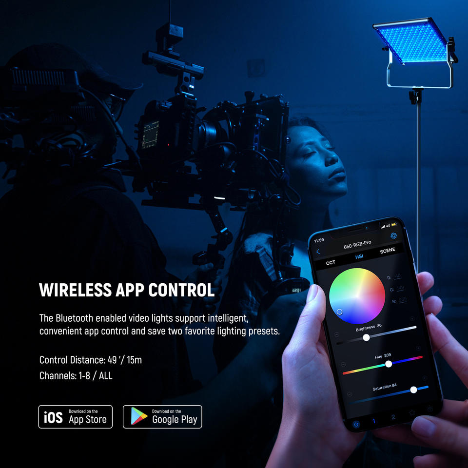 Nouvelle lampe LED de photographie RVB pleine couleur 660 PRO II, contrôle par application, luminosité/colore réglables