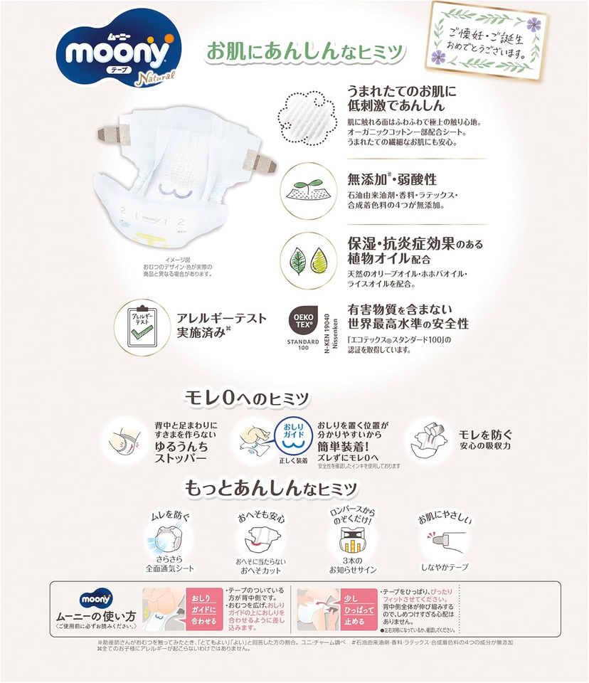 Newest Baby Dipers Moony Natural for Boys Flexible Waist Disposable Wholesale Diapers NB62 Pieces High Reputation Quality Nappy