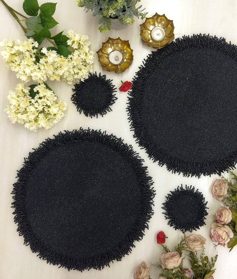Newest Beaded Coaster Arrival Luxury Eco-Friendly Handmade Placemat for Wedding Dining Table Decor Tableware Buy Online India