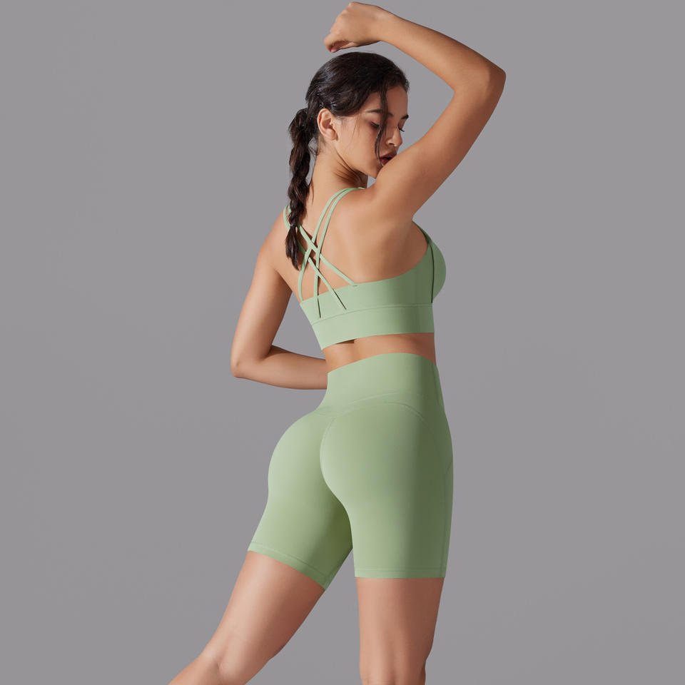 Nouvel ensemble de 5 pièces de sous-vêtements de sport personnalisés avec logo, grande taille, antibactériens et imperméables, comprenant un soutien-gorge dos croisé et un short taille haute pour le yoga