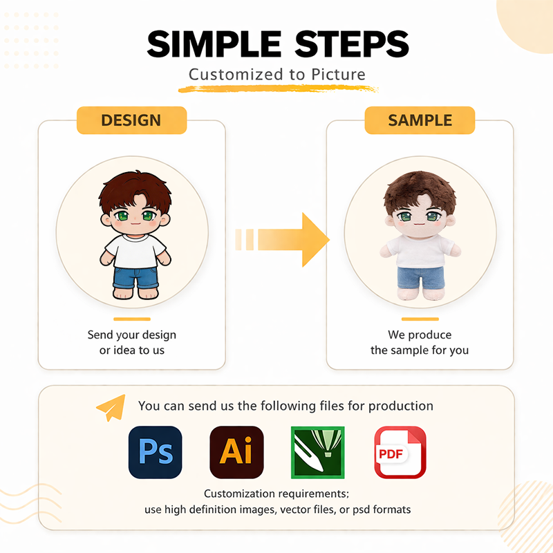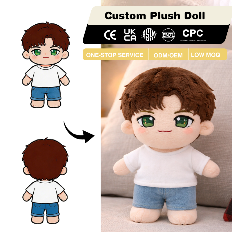 Nouvelle poupée en peluche personnalisée avec des designs personnalisés, taille sur mesure avec divers costumes pour les fans d'artistes, service d'échantillonnage rapide pour peluches personnalisées