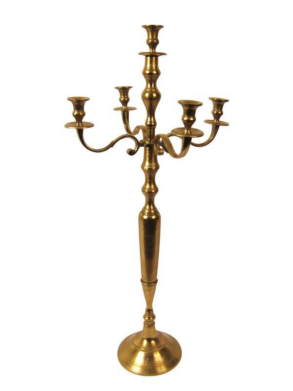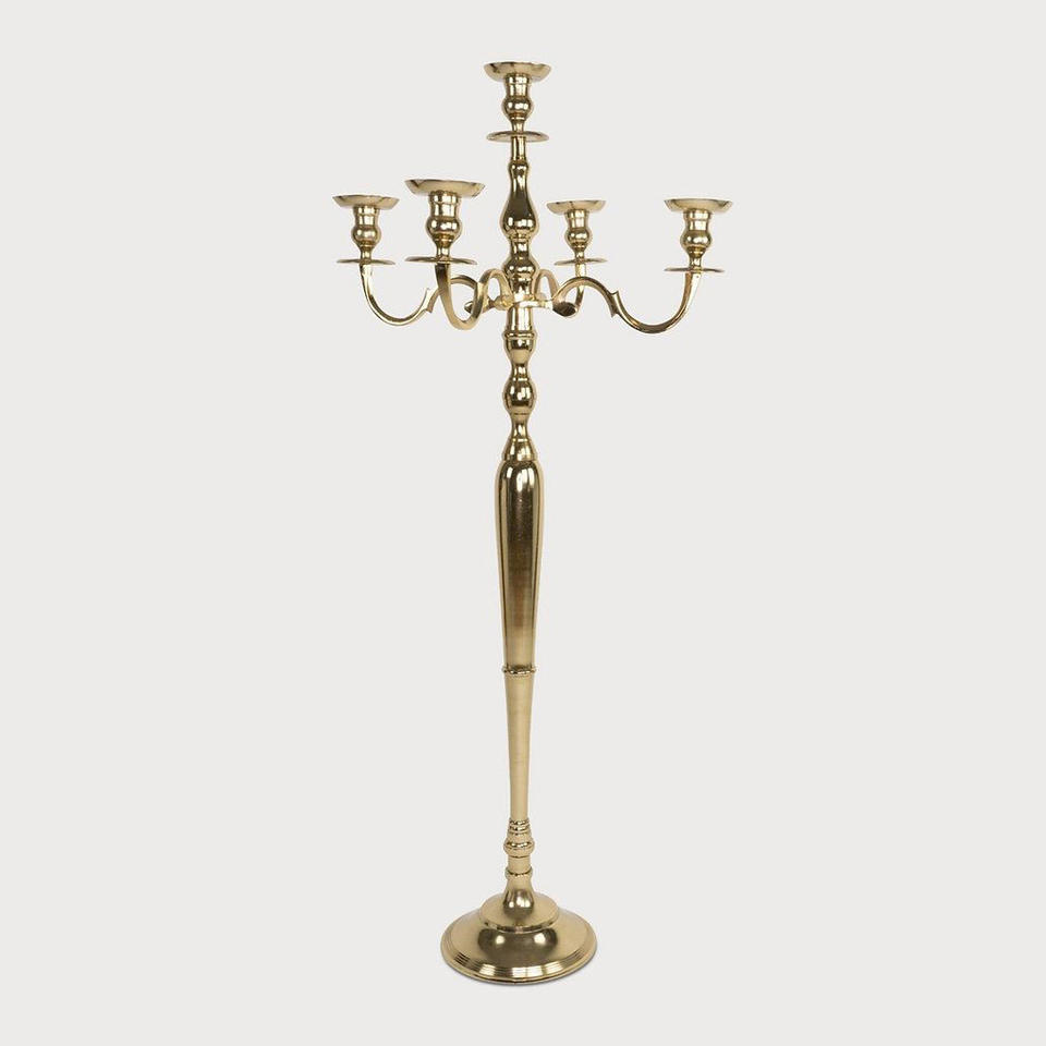 Nouvelle conception exclusive candélabre 5 bras métal aluminium bougeoir brillant or fini meilleur prix de gros pour la déco de mariage