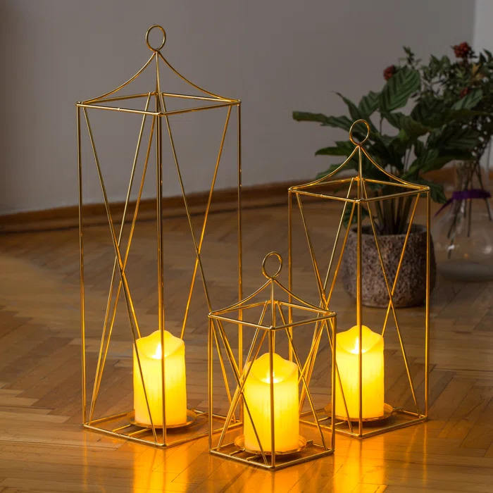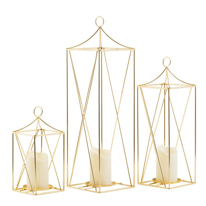 Nouvelle lanterne de bougie de fil de fer de conception en couleur or pour la décoration d'éclairage de maison et de mariage