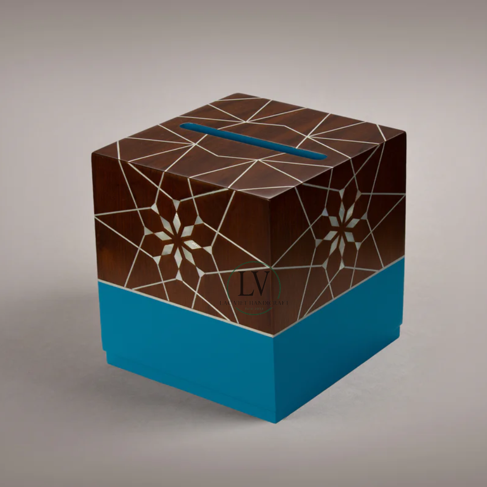 Mother of pearl inlaid woode tissue box coverProduct Name