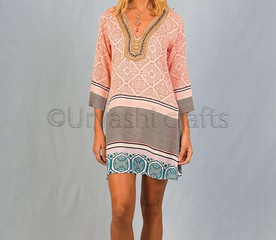 Newest Designer Beaded Tunic Women Digital Print Long Sleeves Womens Tunics