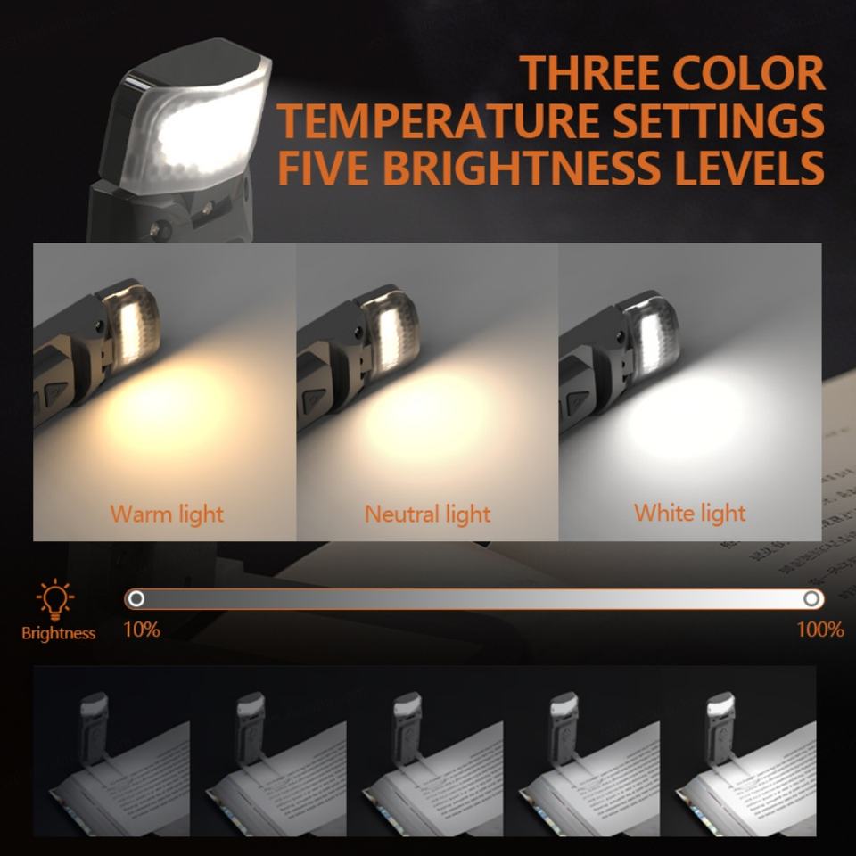 Nouvelle lampe de lecture LED pliable mini, rechargeable par USB, 3 niveaux de luminosité, lampe marque-page, lampe de lecture pour enfants