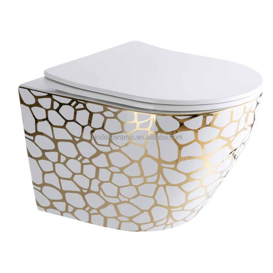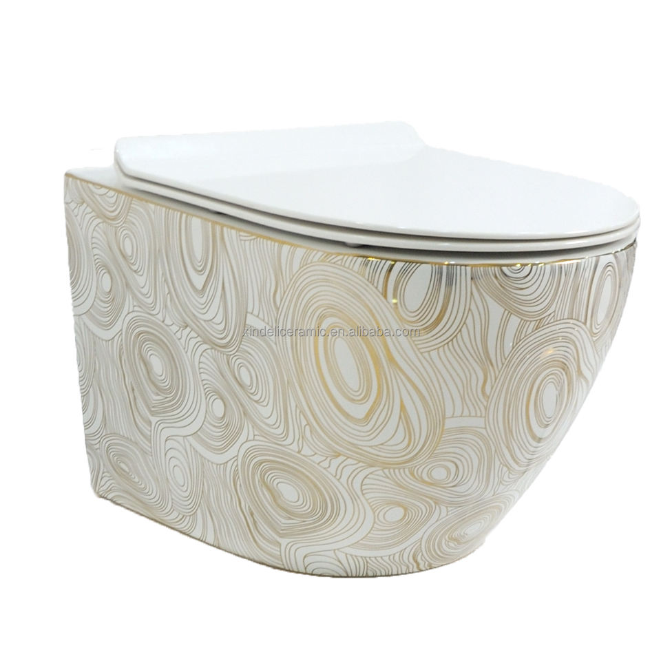 Nouvelle toilette murale sans bride couleur or, sanitaire turque, toilette suspendue avec réservoir d'eau caché, cuvette WC