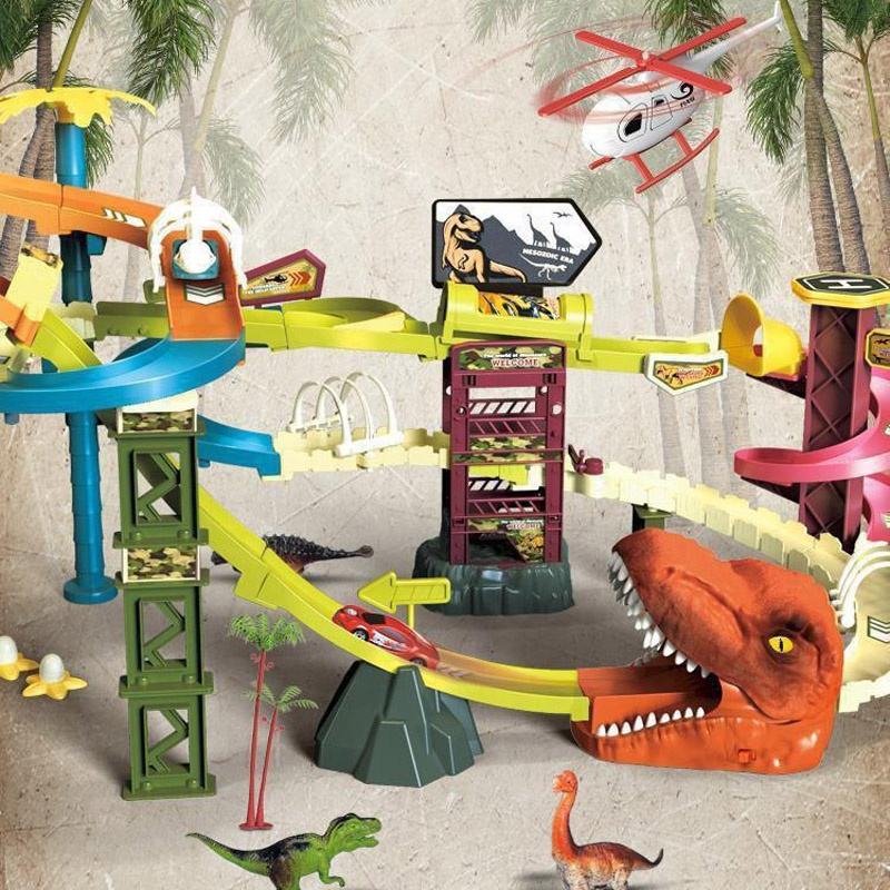 Advantage: tunnel track slot car toy:With light and dinosaur sound effects