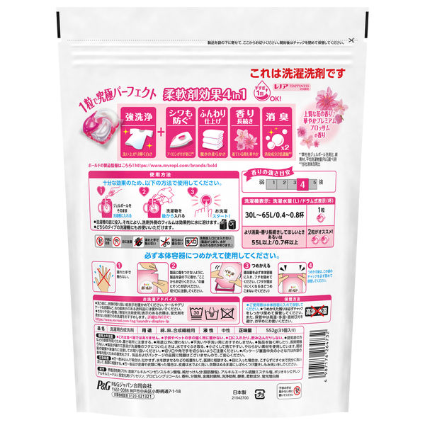 Le plus récent fabriqué au japon Bold Premium Blossom boule de gel parfumée 4D recharge de détergent à lessive grande capacité 103 pièces
