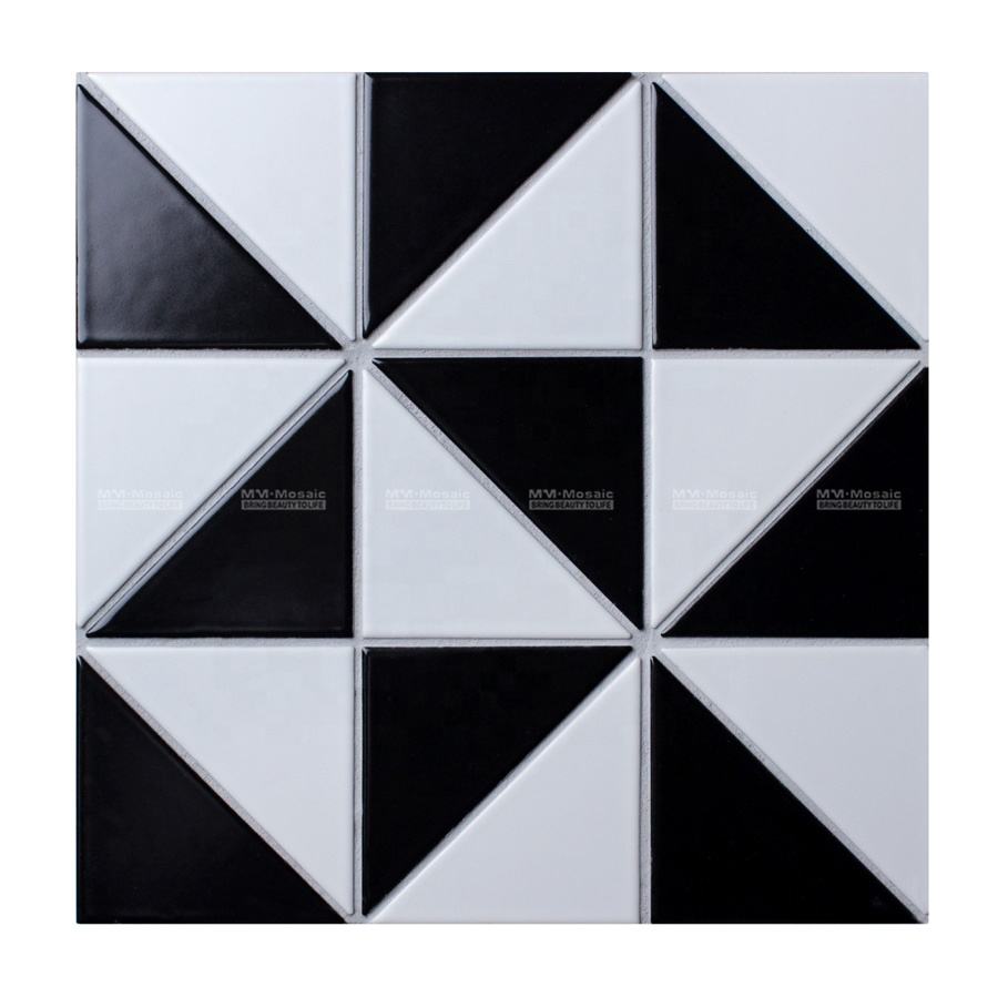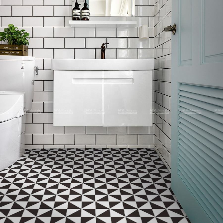 Nouvelles carreaux de sol géométriques en céramique mate noire et blanche à motif moulin à vent de 4 pouces pour salle de bain moderne, douche, restaurant, cuisine
